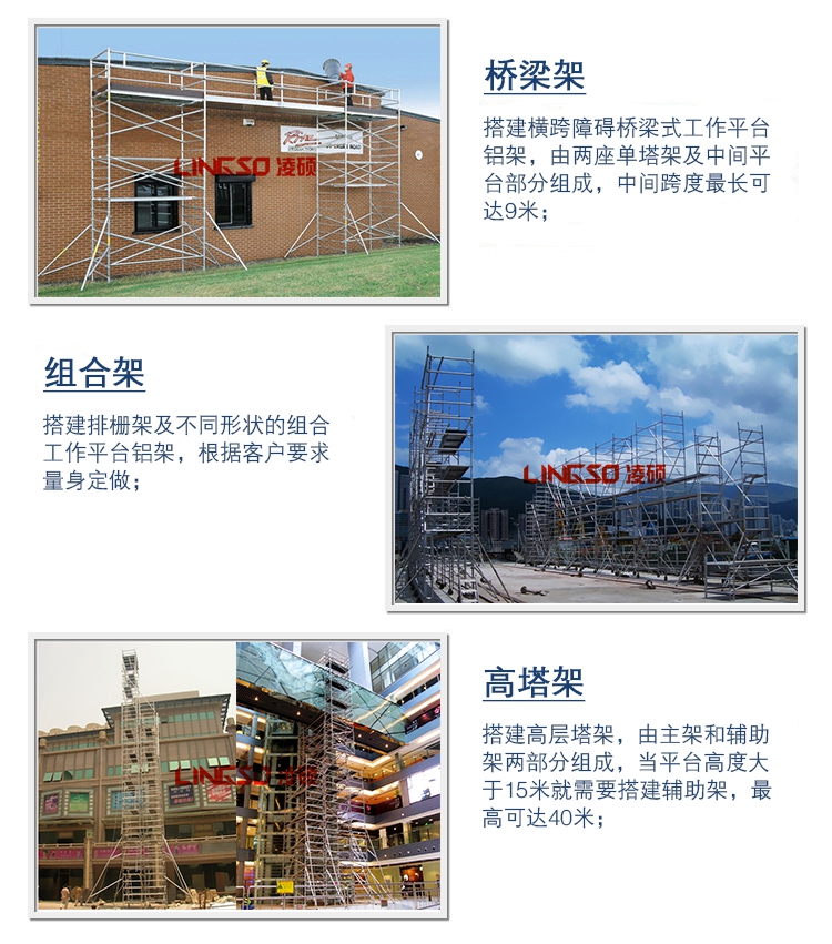 5、機動靈活性:工作平台可設置在塔架任意一級;