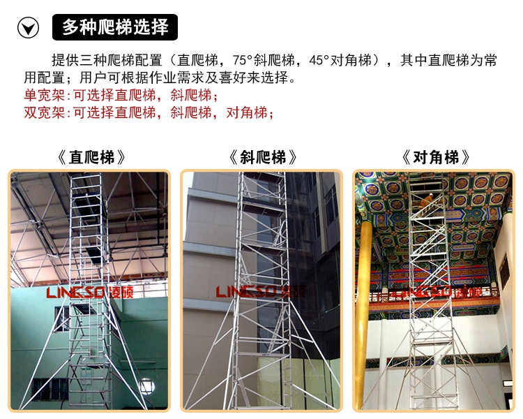 建的時間,工作平台可以搭建在任意一級,方便工作中經常改變作業高度施工需求,是幾種爬梯