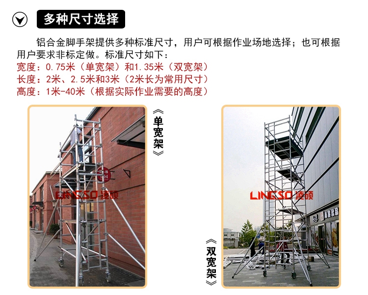 雙寬直爬梯鋁合金腳手架标準尺寸規格: