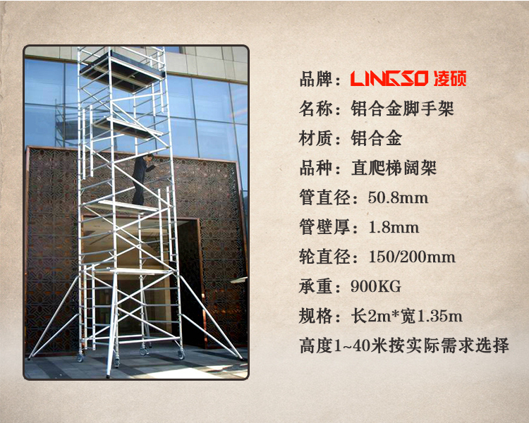雙寬直爬梯鋁合金腳手架,屬于簡易快速安裝的一種鋁合金材料制作而成的腳手架,配有帶