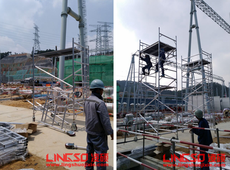 南方電網深圳東方換流站項目,現場指導搭建鋁合金腳手架橋梁式工作平台,部分拍攝圖片。